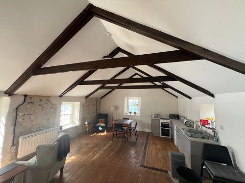 Our Trustee Katie Lennon met up with Clare Mackness (Hireth Architects) for an update on the first phase of the building project. There has been a huge amount of activity since the beginning of January 2026. The upstairs is currently one big open space, stripped right back to the shell of the building. The walls have been stripped right back to the granite and revealed some really interesting historical wooden sections and granite blocks, which must date back to the mining times. The builders are doing a great job and they are very tidy and respectful of the building.